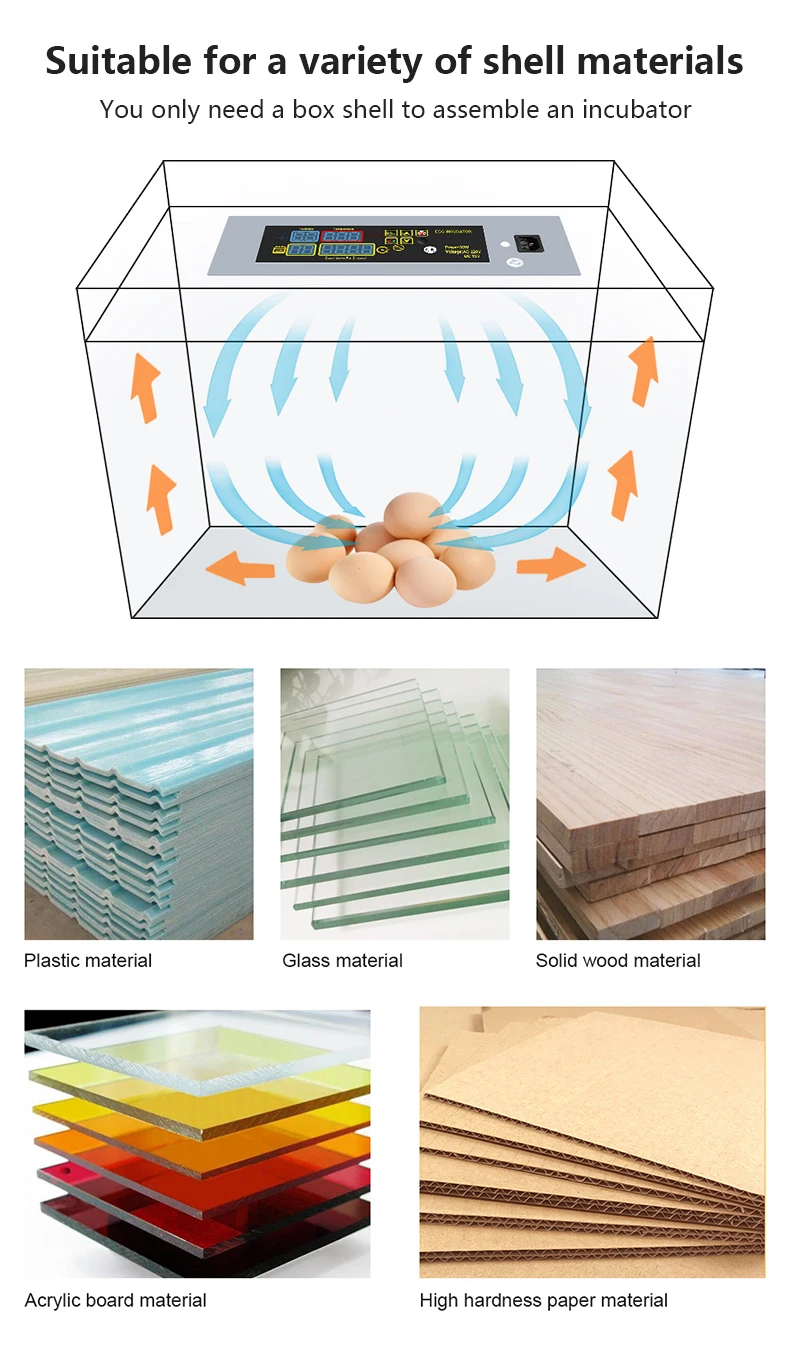 Это своего рода высококачественный инкубатор для яиц, принимает нагревательный лист PTC, автоматическую постоянную температуру, энергосбережение, дает вам стабильную инкубаторную температуру. Сложный датчик температуры, обеспечивает точность сбора информации. Оснащен вытяжным вентилятором, равномерным рассеиванием тепла, с низким уровнем шума и может обеспечить длительный срок службы. DIY Мини принадлежности для инкубаторов, подходит для акриловой доски, пластмассы, стекла, дерева, твердой доски и т. Д ..