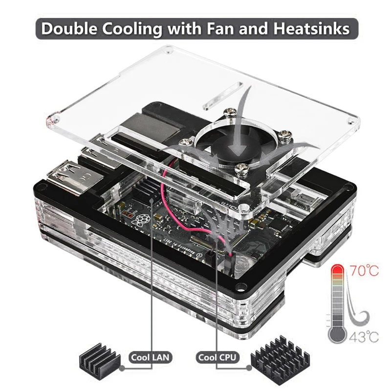 Посылка входит:1 шт. Корпус для Raspberry Pi 3/41 шт. вентилятор 3007 5 В3 шт. радиатор