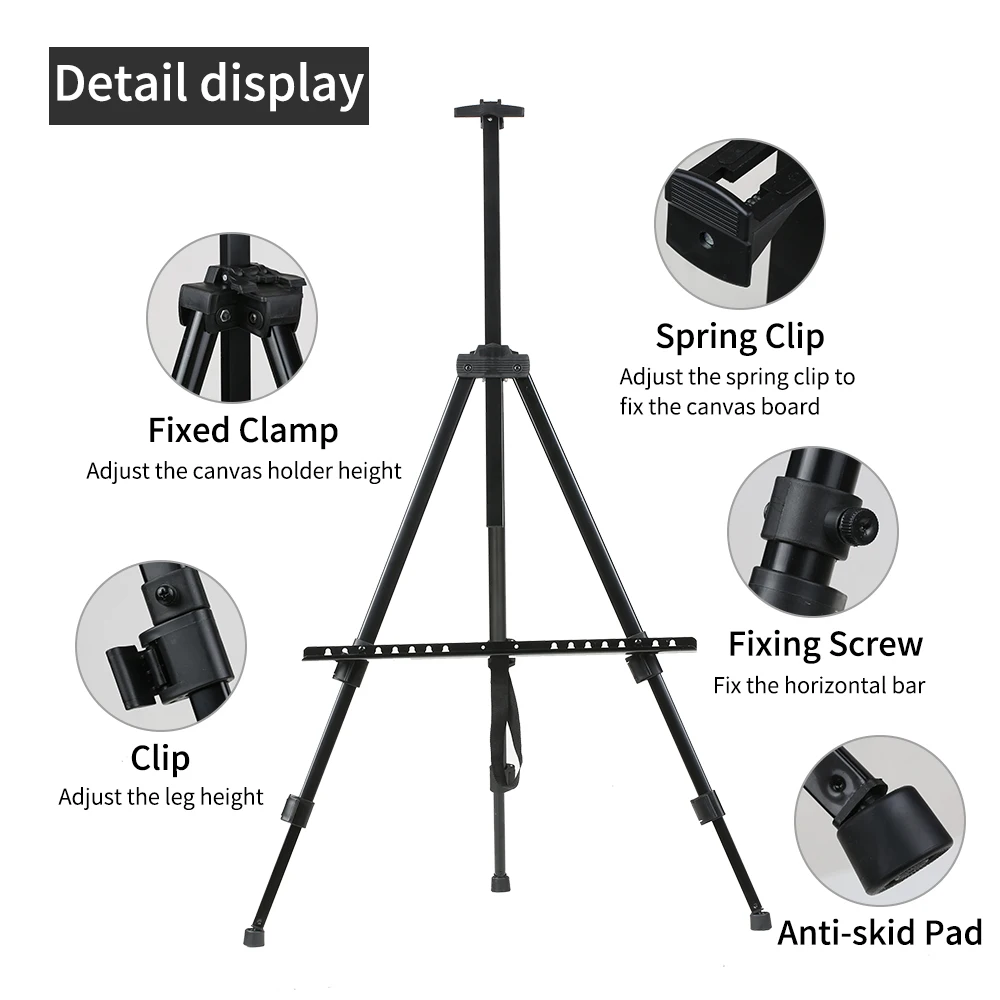 The maximum height of canvas holder is 82cm, suitable for placing drawing board, poster board, advertising board. Widely used in displaying, indoor and outdoor sketching, drawing, etc.