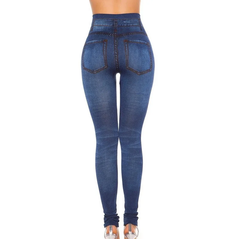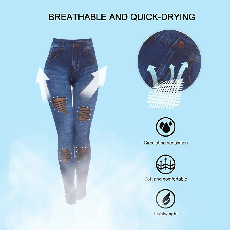 Размера плюс, модные женские тонкие леггинсы жемчуг рваные бесшовные высокое юбка с завышенной талией из искусственной лосины из джинсовой ткани; Повседневные женские узкие брюки