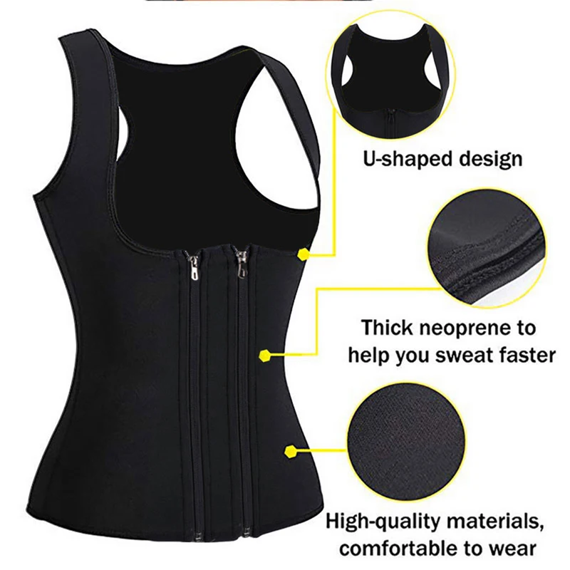 Женский неопреновый костюм для сауны, жилет для тренировок по талии, для похудения, хит продаж, Термальный корсет, формирователь тела, майка на молнии, тренировочная рубашка.