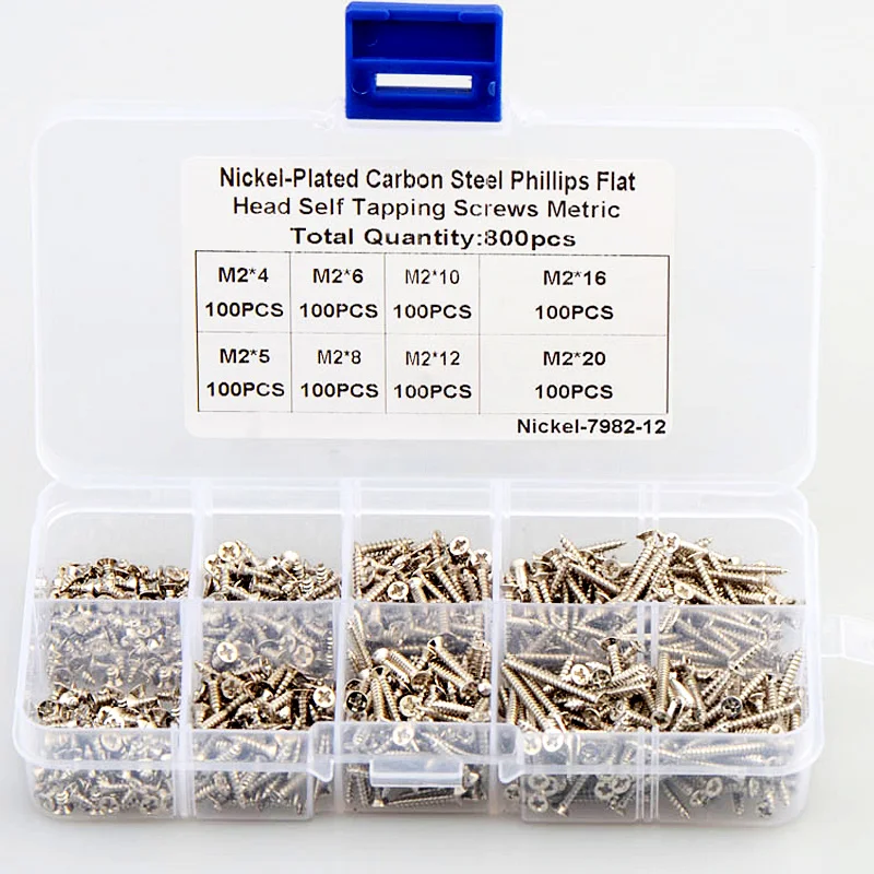 KA Cross Head Countersunk Head Self Tapping Nail Set Carbon Steel Nickel Plated Flat Head Self Tapping Screw Set M2 800pcs
