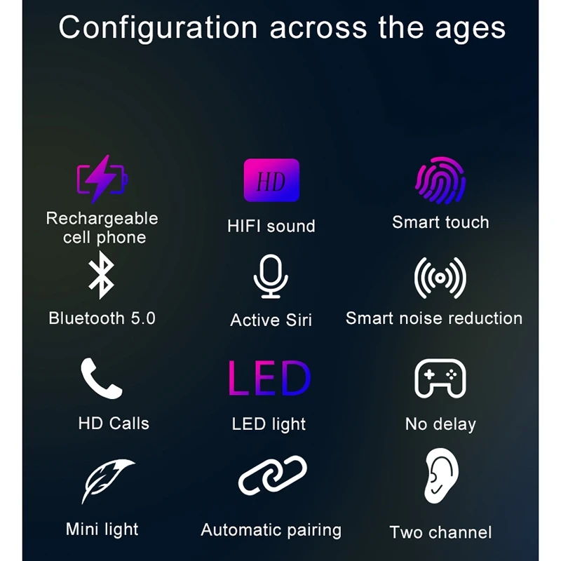 [BLUETOOTH 5. 0] -использует самые передовые технологии Bluetooth 5. 0. TWS поддерживает HSP, HFP, A2DP, AVRCP. Обеспечивает более быстрое сопряжение, более стабильное соединение. 10 м Проверенное беспроводное соединение без блокировки и задержки нулевой передачи.