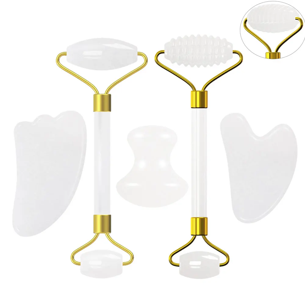 Натуральный белый нефритовый ролик Guasha скребок для доски набор Белый Кварцевый лицевой роликовый лицевой массаж Gua Sha инструмент камень массажер для лица