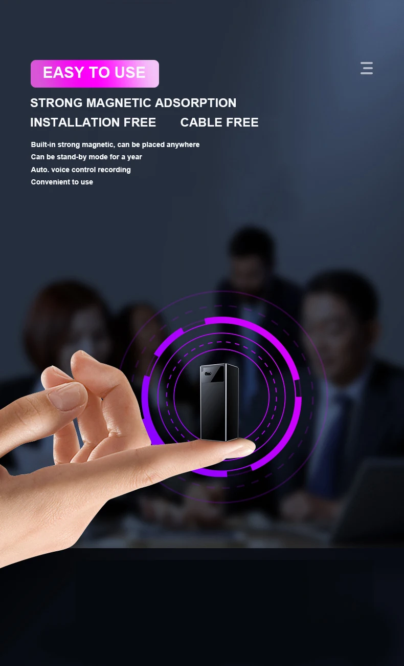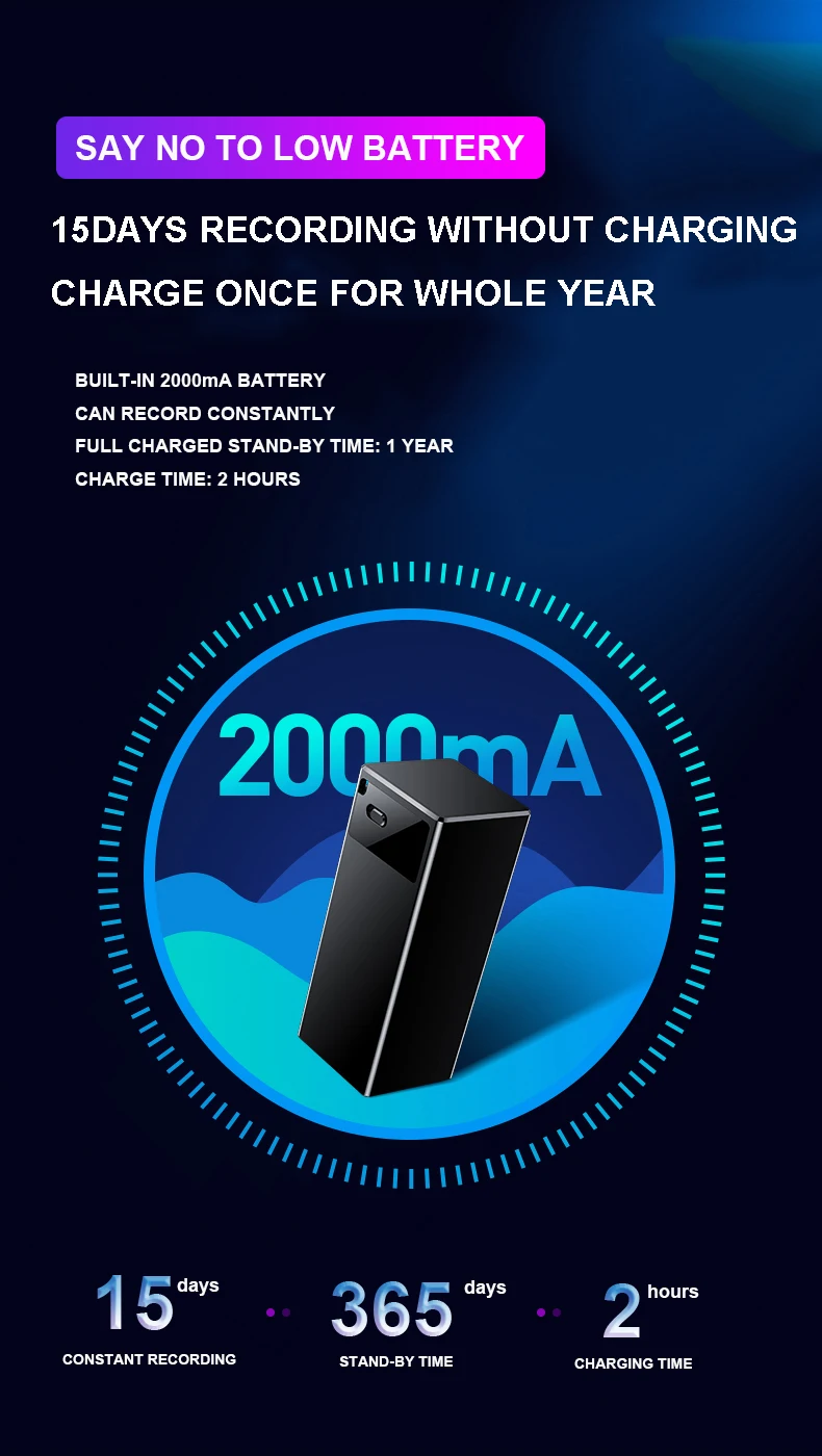 1. Корпус изготовлен из АБС-пластика, устойчив к падению 2. Профессиональный чип записи ATJ3315D, HD Запись 3. Отметка времени, имя записи файлов по дате автоматически 4. Небольшой дизайн 5. Функция AGC автоматически регулирует Источник шума 6. Отслеживайте Запись в реальном времени/слуховой аппарат fuction 7. Диктофон, MP3 и мобильный HD 8. Один ключ для записи/сохранения 9. Поддержка голосового режима VOR 10. Обнаружение низкого заряда батареи и автоматическое сохранение файлов записи 11. Встроенный перезаряжаемый литиевый аккумулятор 2000 мАч 12. Разъем USB 2,0, легко загружать и загружать файлы 13. Цвет: черный