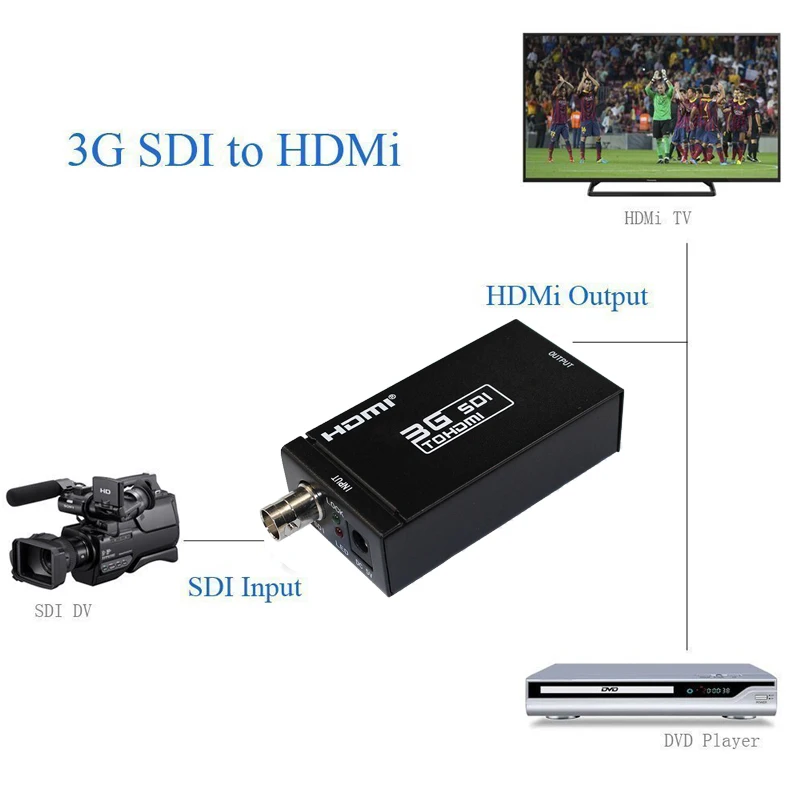 Показывает источник SDI на дисплее HDMI: поддерживает расстояние SDI intput до 100 метров (3G-SDI), 200 метров (HD-SDI) или 300 метров (SD-SDI);SDI Интерфейс работает на битрейтах 2,970 Гбит/с, 2,970/1,001 Гбит/с, 1,485 Гбит/с, 1,485/1,001 Гбит/с и 270 Мб/с