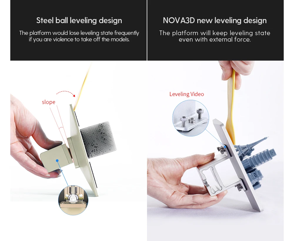 Масса нетто: 9,5 кг Вес брутто: 11,5 кг Размер сборки: 130x80x150mm Размер принтера: 240x250x430mm Пакетразмер размерный ряд: 34 x304x547mm Ломтерезка: NOVAMaker Совместимые материалы: 405nm смола