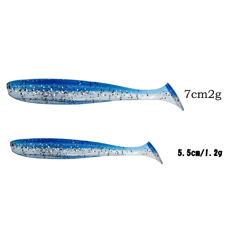 5 шт./лот, мягкие рыболовные приманки 55 мм 70 мм, воблеры с Т-образным хвостом, двухцветные силиконовые приманки для морской рыбалки, приманки для плавания, искусственные снасти