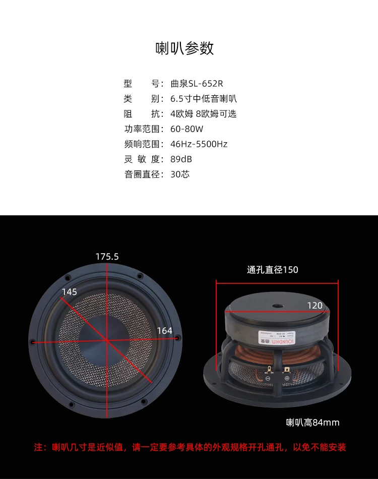PS: This product link have 2 order options for Soundhits SL-651R and SL-652R midwoofer speaker, each speaker have different datasheet, please read the speaker specification carefully as below